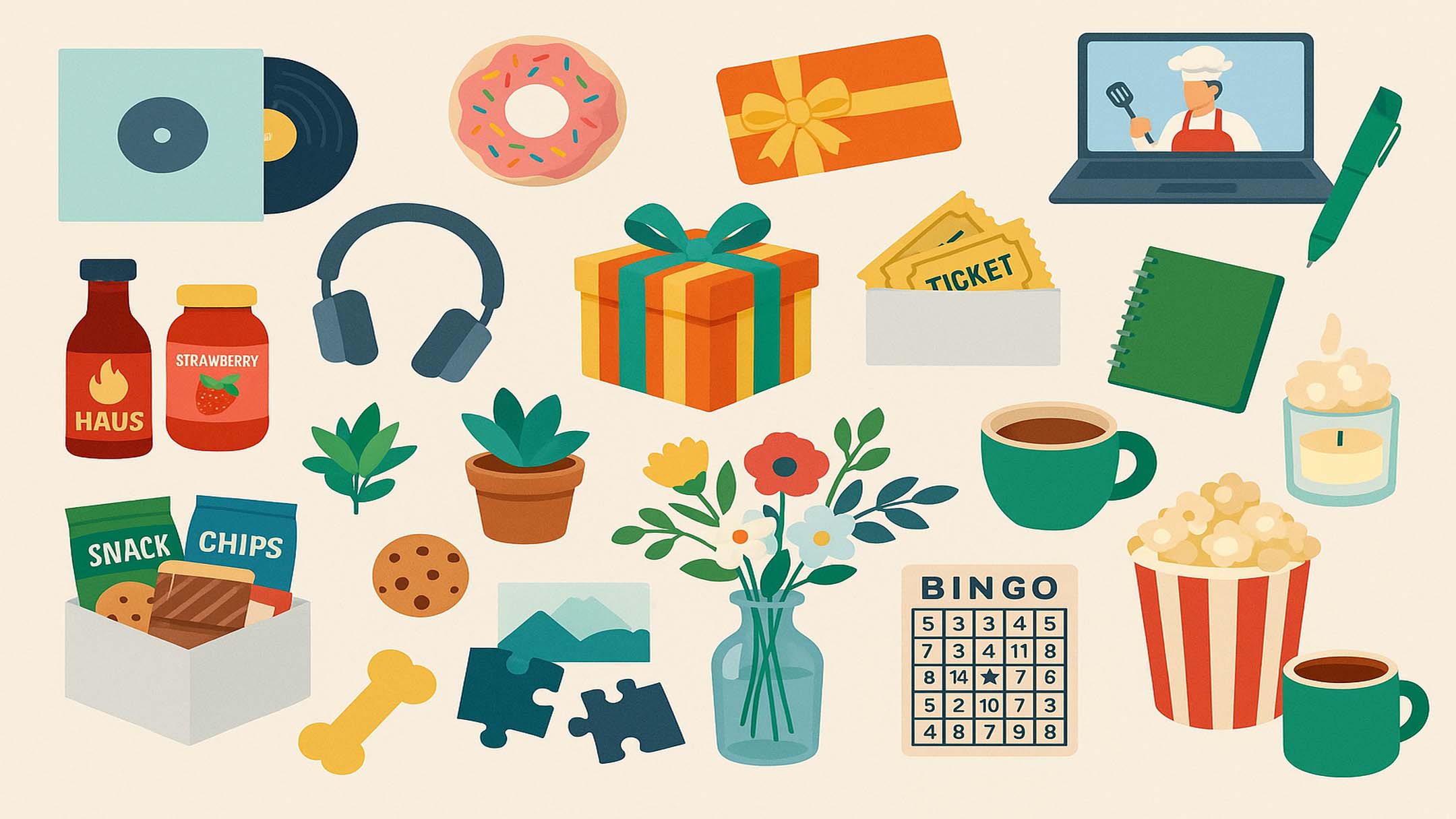 Here’s some ideas: A jar of jam/jelly from that great country gift store?; A few times a year, have the gesture be a box of donuts delivered by the nearest donut shop to each employee; A pair of movie tickets to the movie theater closest to each employee; A curated “Snack Drop” of unique snacks or treats (e.g. an assortment of “Japanese KitKat” flavors, or pretzels with dipping sauces, or an array of chocolates, or maybe just a pack of M&Ms in the company colors.); Coffee, Tea, and Hot Chocolate Explorer Pack with a range of flavors from a specialty shop; A ‘Baker’s Box’ from their local bakery to deliver a small box of pastries or cookies that are different every time; Puzzle box with some ring and rope kits, a Rubik’s Cube, or a small box that they have to figure out how to open. What about a voucher toward a live, online experience, like a single cooking class, improv session, or art class? Maybe once or twice a year it actually IS fresh flowers or a small desk plant that can survive shipping; A fun pen or a power-bank for their phones; A nice smelling candle; A fun / historic / business-related book; A donation to a charity they like (NOT the ‘Human Fund’); A trivia game card set; An old/weird 6-pack of Soda; A unique hot sauce; Or maybe a small oil paint kit with a couple of small canvases and brushes.